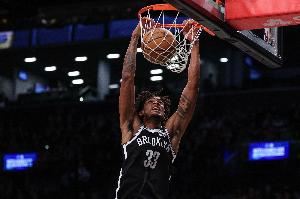 上半场,篮网内线克拉克斯顿表现出色,不但进攻高效还很全能,在14分钟的时间里,投篮7中5,罚球1中1,拿到11分8篮板5助攻1抢断的数据,正负值+22。