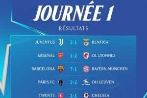 女足欧冠首轮赛果:巴萨7-1拜仁、皇马6-2罗马、阿森纳1-2里昂